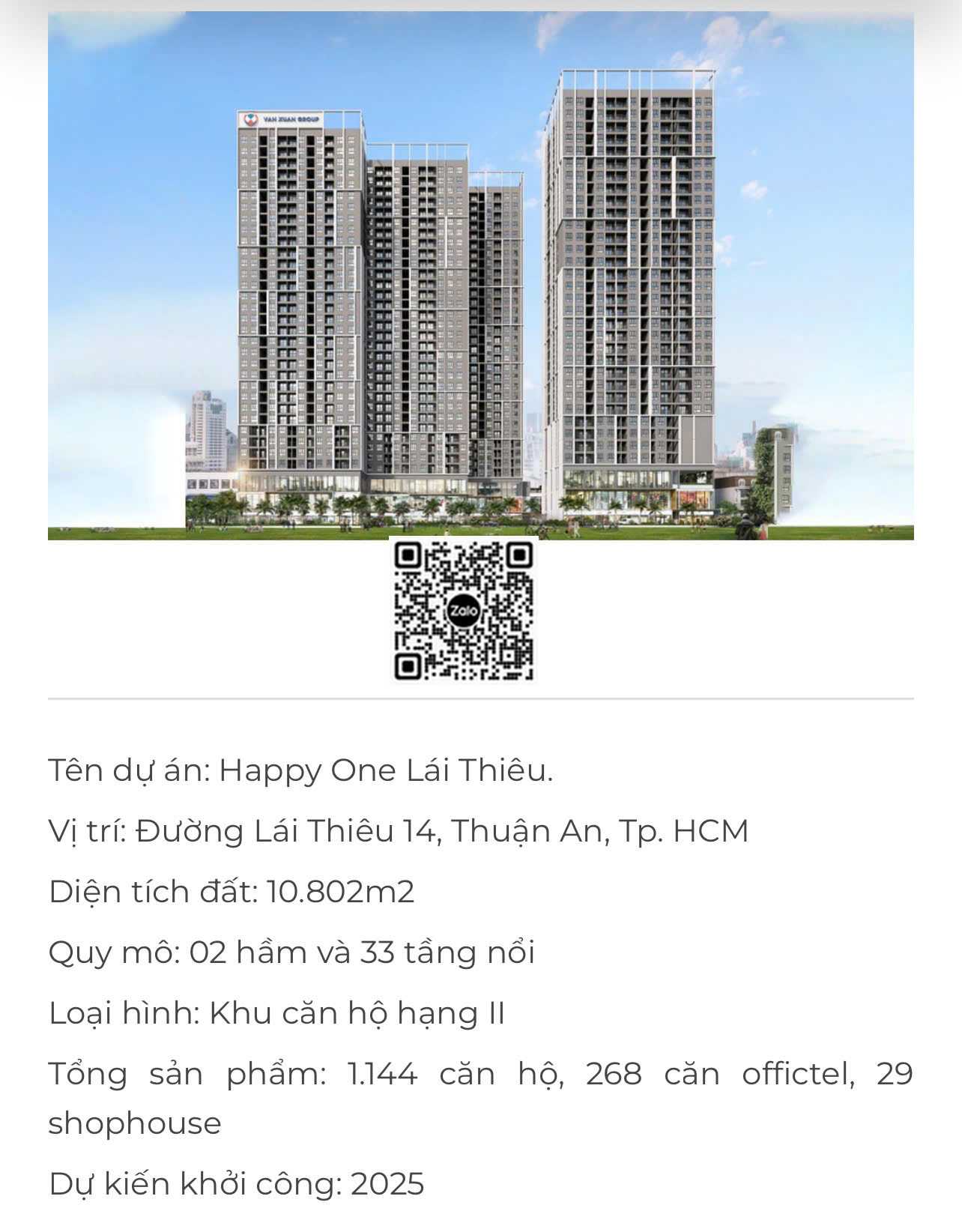 Happy One Mori được đánh giá là dự án trọng điểm tại P. Thuận An năm 2025 của Vạn Xuân Group. Sáng 09/08/2025, Vạn Xuân Group chính thức khởi công Happy One Mori – dự án gồm 1.441 sản phẩm tại phường Lái Thiêu, TP.HCM. Với vị trí kết nối thuận tiện, pháp lý minh bạch và sự đồng hành của những tên tuổi uy tín như MB Bank, Long Giang Foundation, Inno, ICP Project…, Happy One Mori được kỳ vọng sẽ thổi làn gió mới vào thị trường căn hộ trong nửa cuối năm 2025.